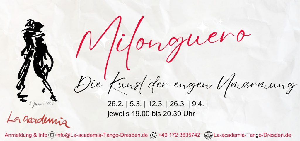 Du möchtest in enger  Umarmung tanzen, den Unterschied Milonguero-Style und Tanzen in enger Umarmung kennenlernen, klein tanzen und groß spüren? Dann melde dich für diese 5 Termine an.